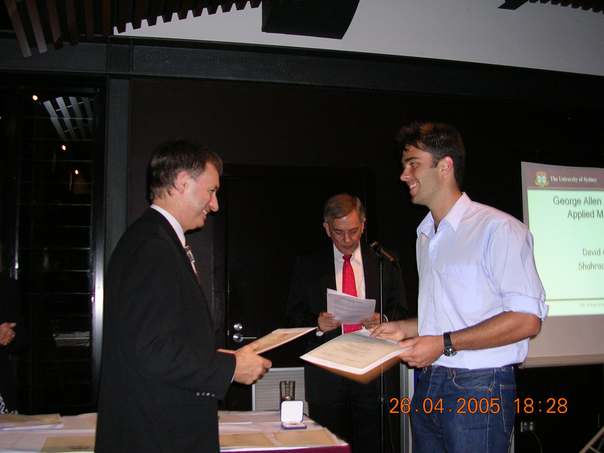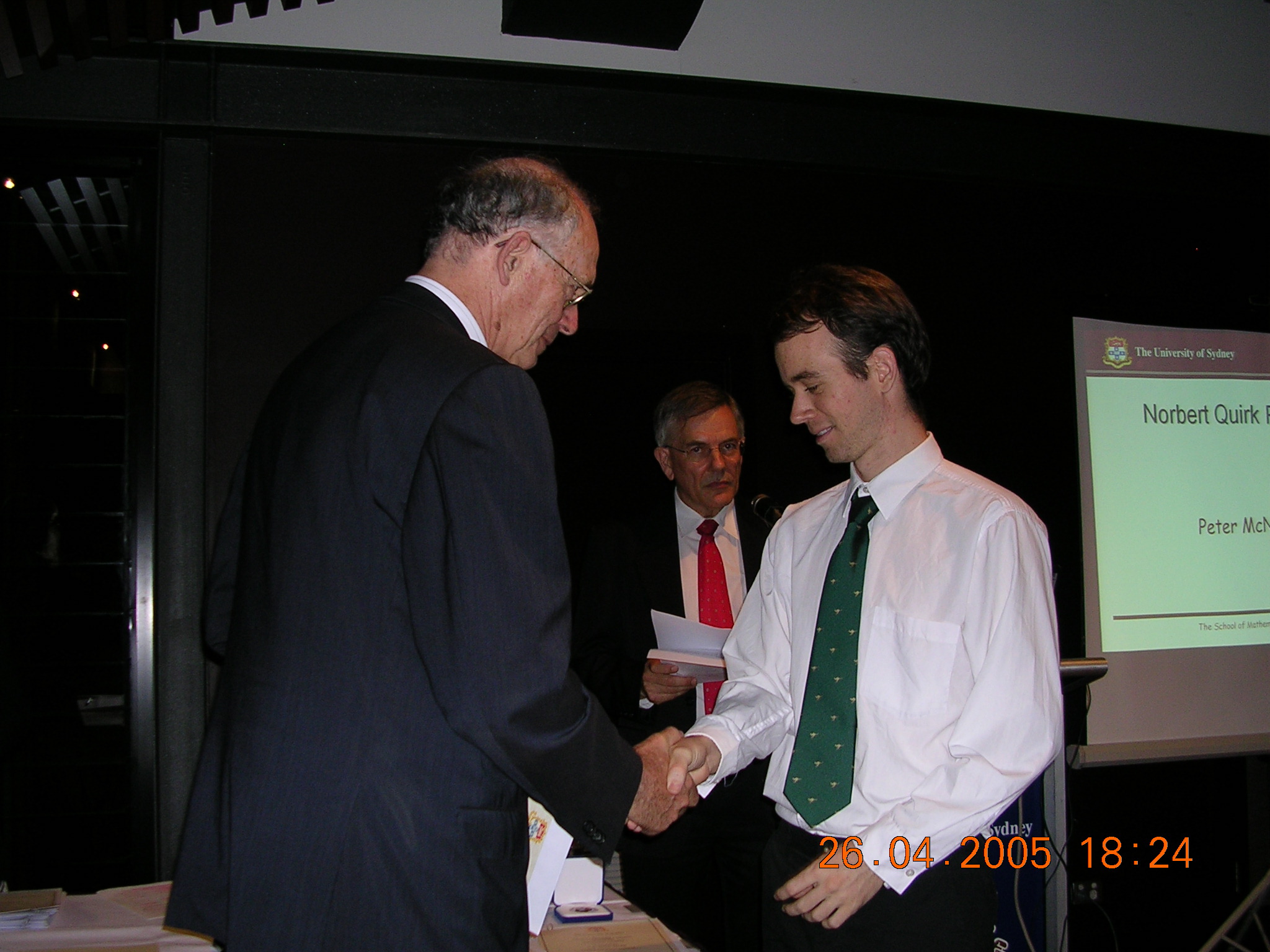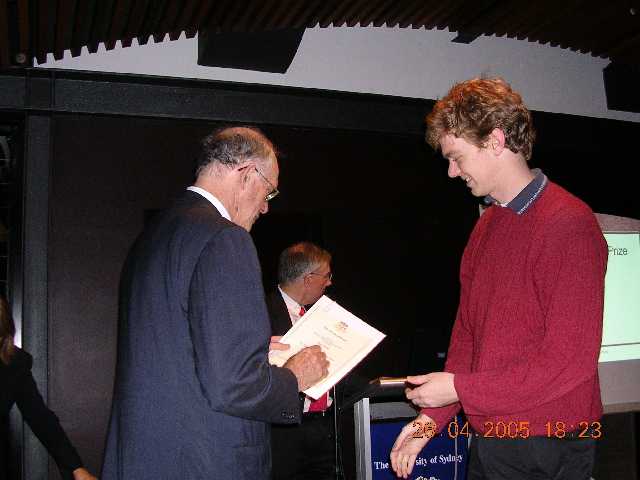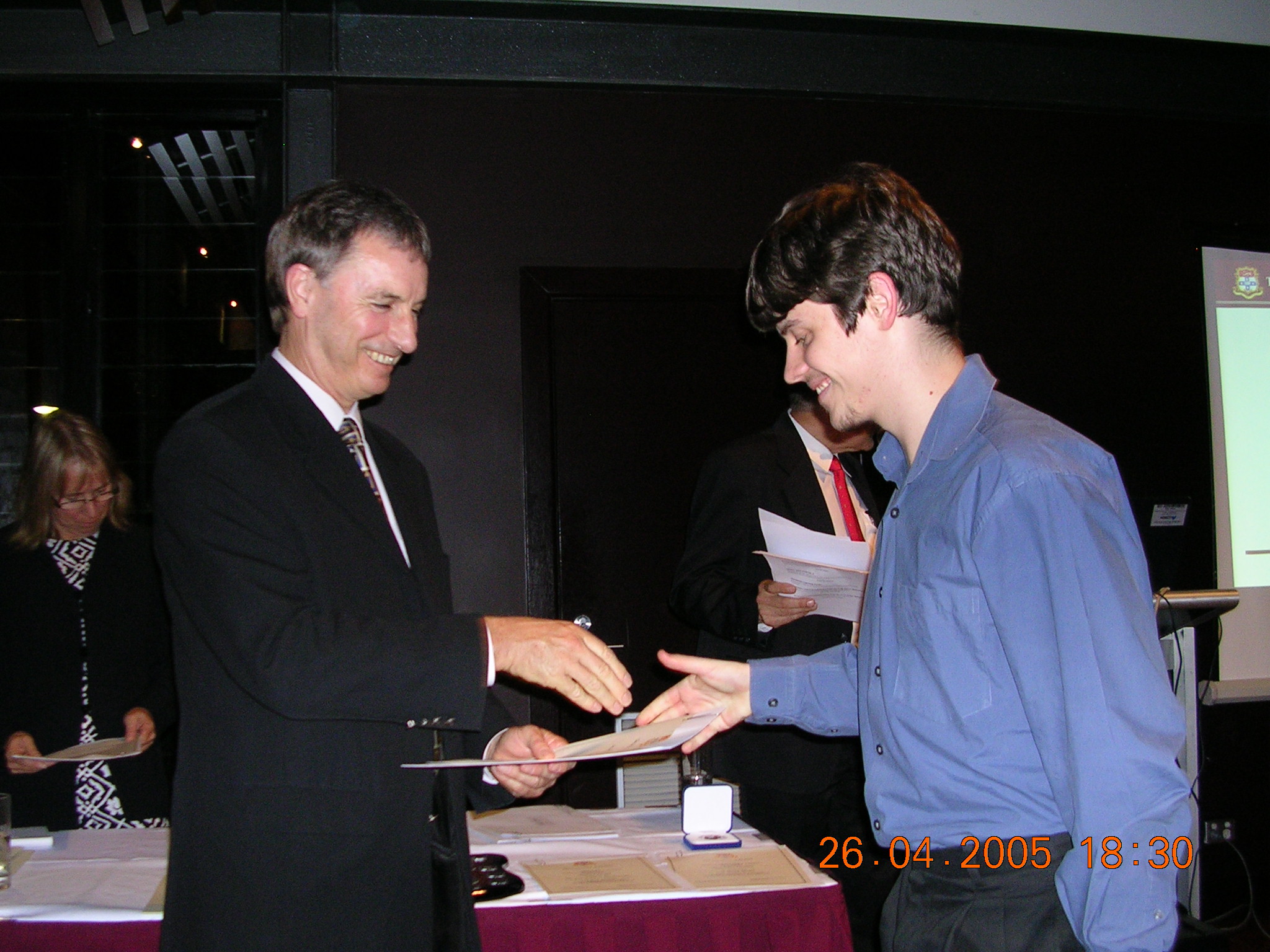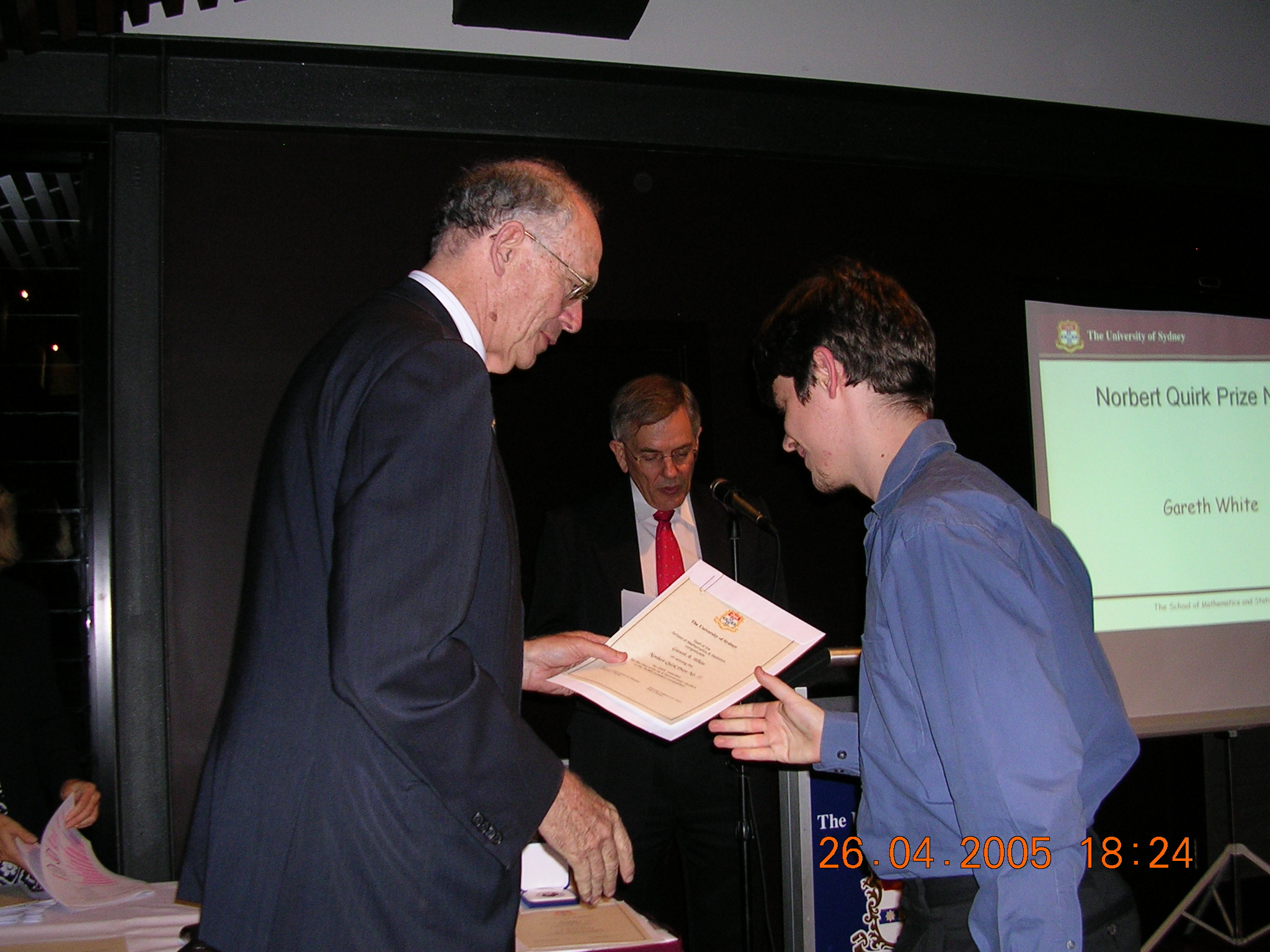 The first 12 of these are shots of prizewinners receiving their awards from the Chancellor (for the first 8) or the Dean of Science. The man in the red tie in the background is our Head of School, Prof Don Taylor. The remaining photos are sundry scenes captured by our roving reporter.