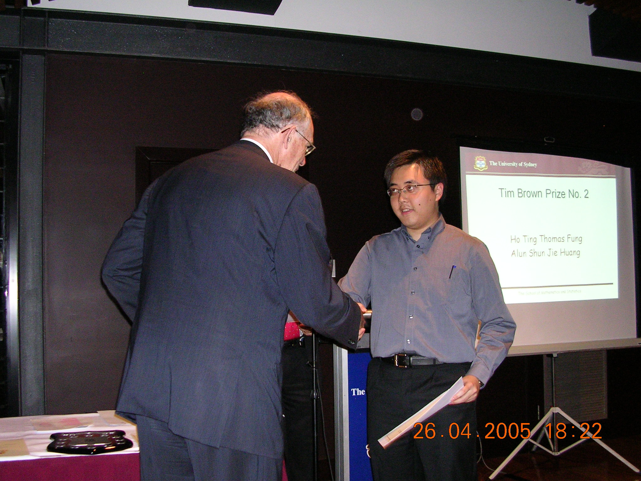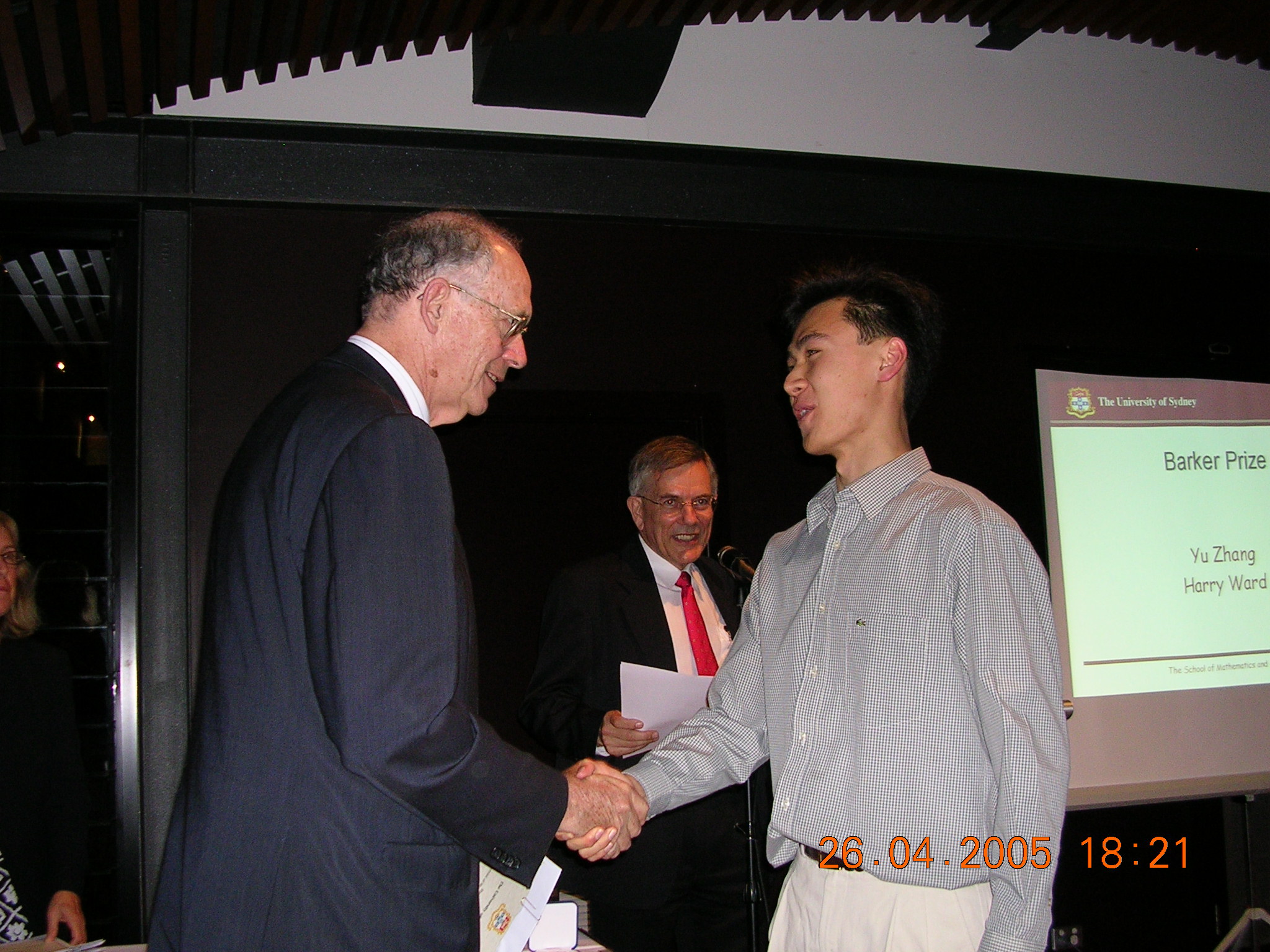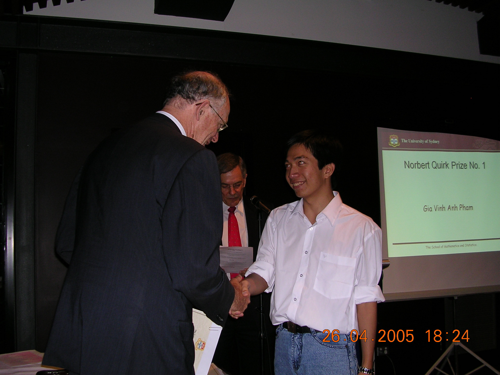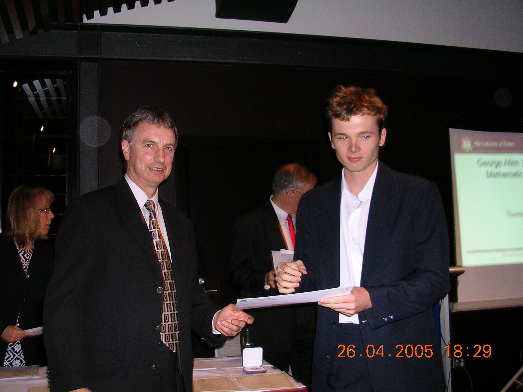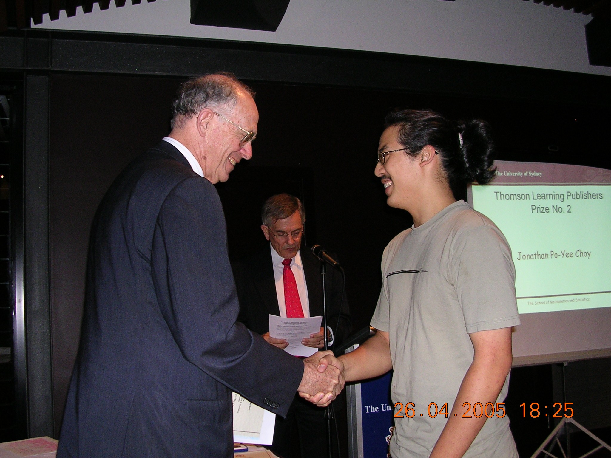The first 12 of these are shots of prizewinners receiving their awards from the Chancellor (for the first 8) or the Dean of Science. The man in the red tie in the background is our Head of School, Prof Don Taylor. The remaining photos are sundry scenes captured by our roving reporter.