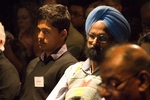 Montek Gill watching on with his father. |