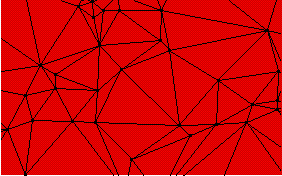 This is an example of the "falling-leaf" tessellation, studied in #58. Congruent polygonal leaves fall randomly onto the plane covering leaves which have fallen earlier. Our interest is the random tessellation formed by the leaf edges when temporal equilibrium is reached. Results are given in #58 for stochastic properties of the tessellation's polygons and vertices (even when shapes are more elaborate, with curved edges). |