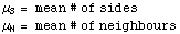 Random tessellations can be quite general in character, with vertices of all orders and polygons of all sizes and shapes. A general theory of ergodic homogeneous tessellations is developed in #10 and #14. Results include the first proofs (and correct statement) of topological linkage formulae where, for the typical polygonal cell, assumed convex, and, for the typical vertex, θ = the mean # of arms and φ = the proportion of vertices which have an angle of 180 degrees between two of its adjacent arms. Note: φ is the phi in the formula. |