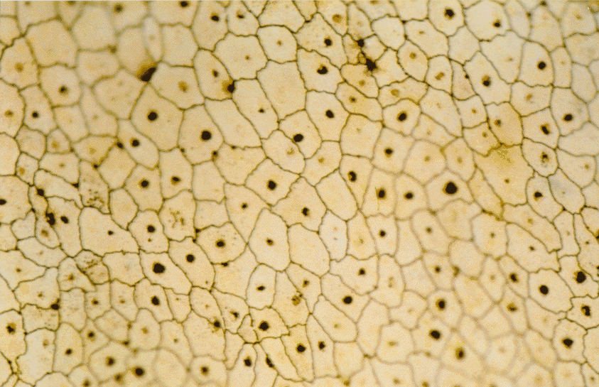 This is another epithelium, in the stomach of humans. Photo provided by the Department of Anatomy at the University of Hong Kong. Question: How to estimate the variance of the cellular areas, with due account for edge effects in the photo? Information from the cells truncated by the boundary cannot be ignored. Nor are the cells wholly enclosed in the field of view representive of all cells (if the field is not large). This type of question is studied by statisticians working with spatial patterns. |